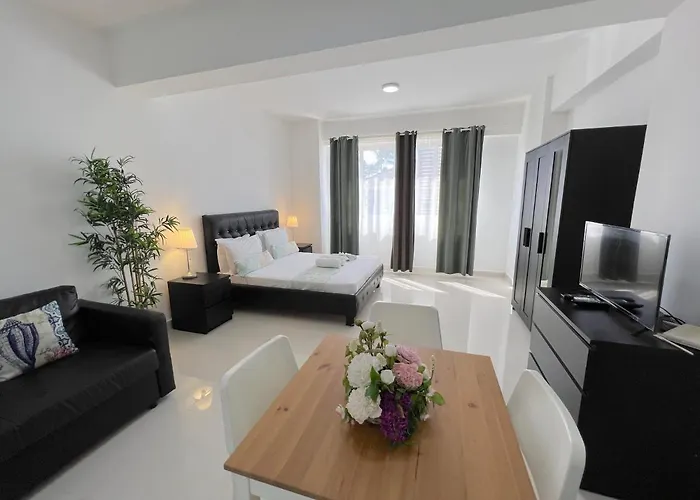 Die Unterkunft bietet moderne und stilvoll eingerichtete Zimmer, die alle Annehmlichkeiten für einen angenehmen Aufenthalt bereitstellen. Zu den Zimmertypen gehören Classic Studio, Deluxe Studio und Luxury Studio, die mit gemütlichen Betten, Kochnischen und kostenfreiem WLAN ausgestattet sind. Die geschmackvolle Gestaltung und die gepflegte Sauberkeit der Zimmer heben den Urlaubskomfort auf ein neues Level.
